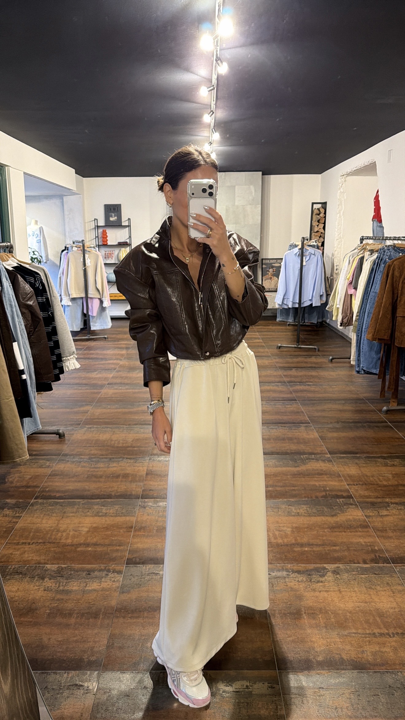 Pantalon ample taille élastique – beige nouvelle coupe ultra tendance