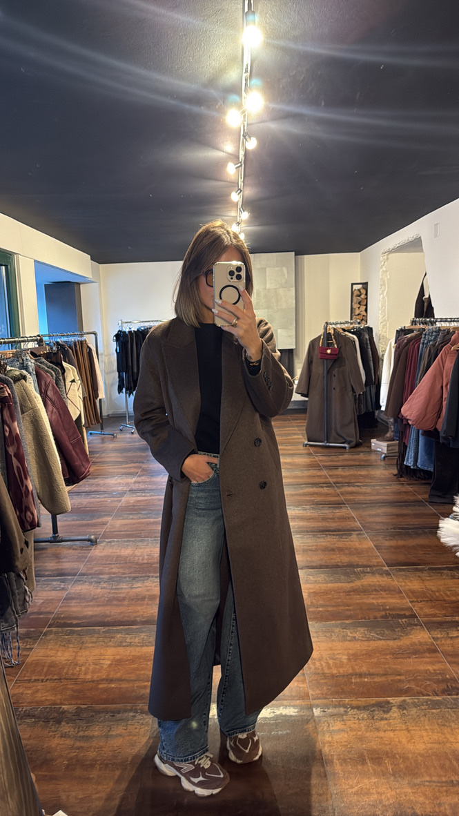 Manteau avec capuche premium – fausse fourrure lisse marron