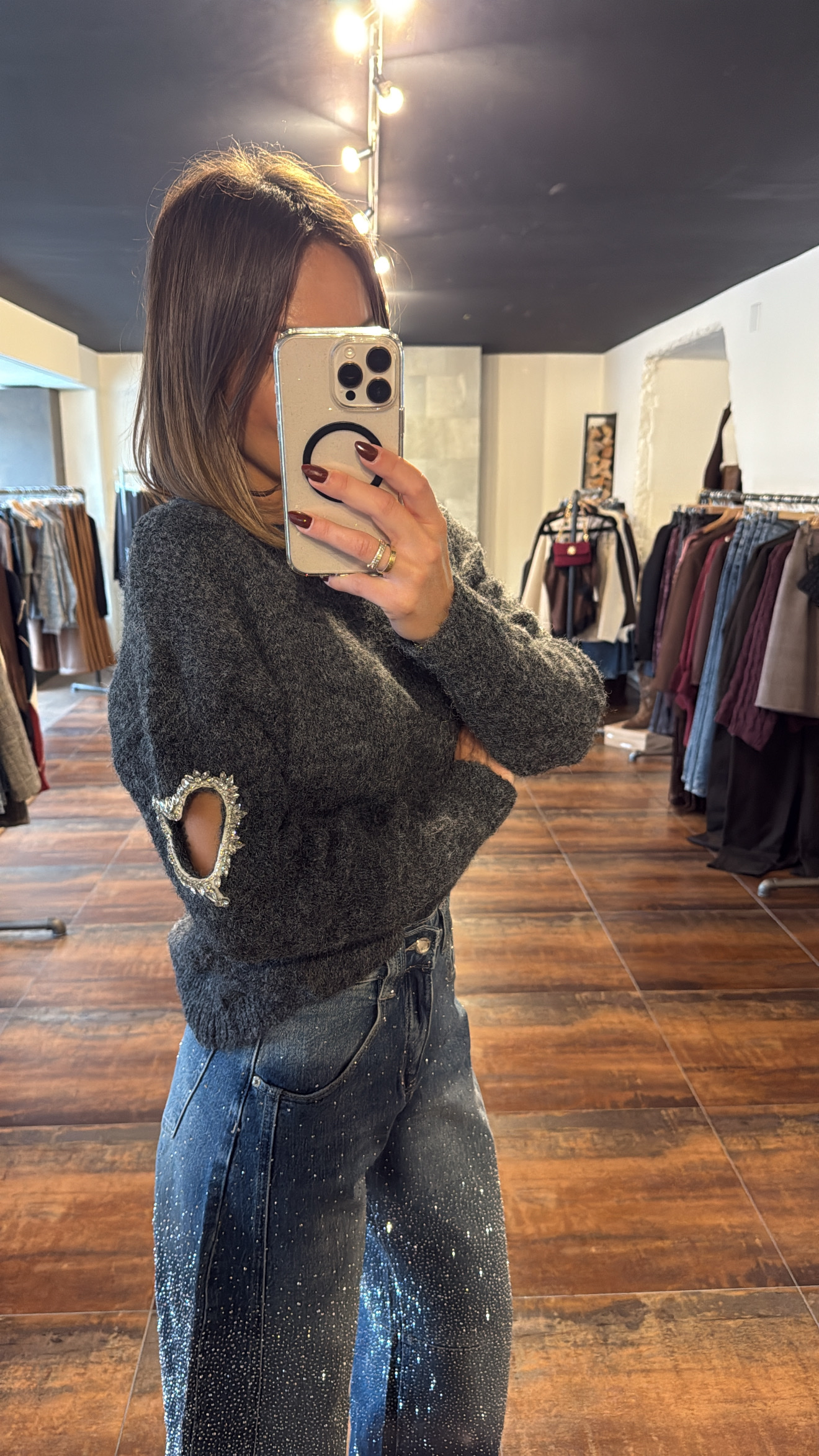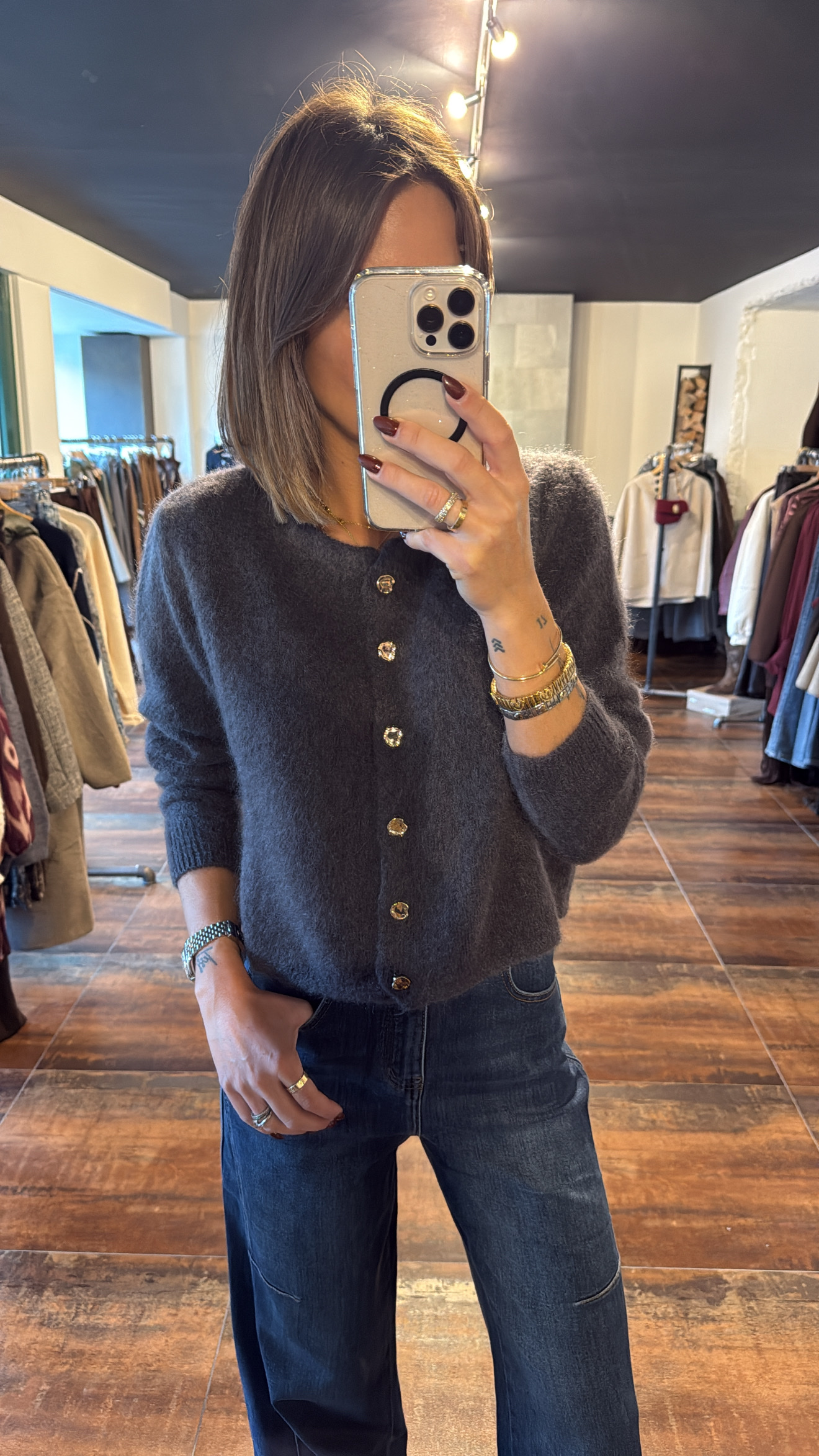 Gilet superfine kid mohair anthracite – boutons gold