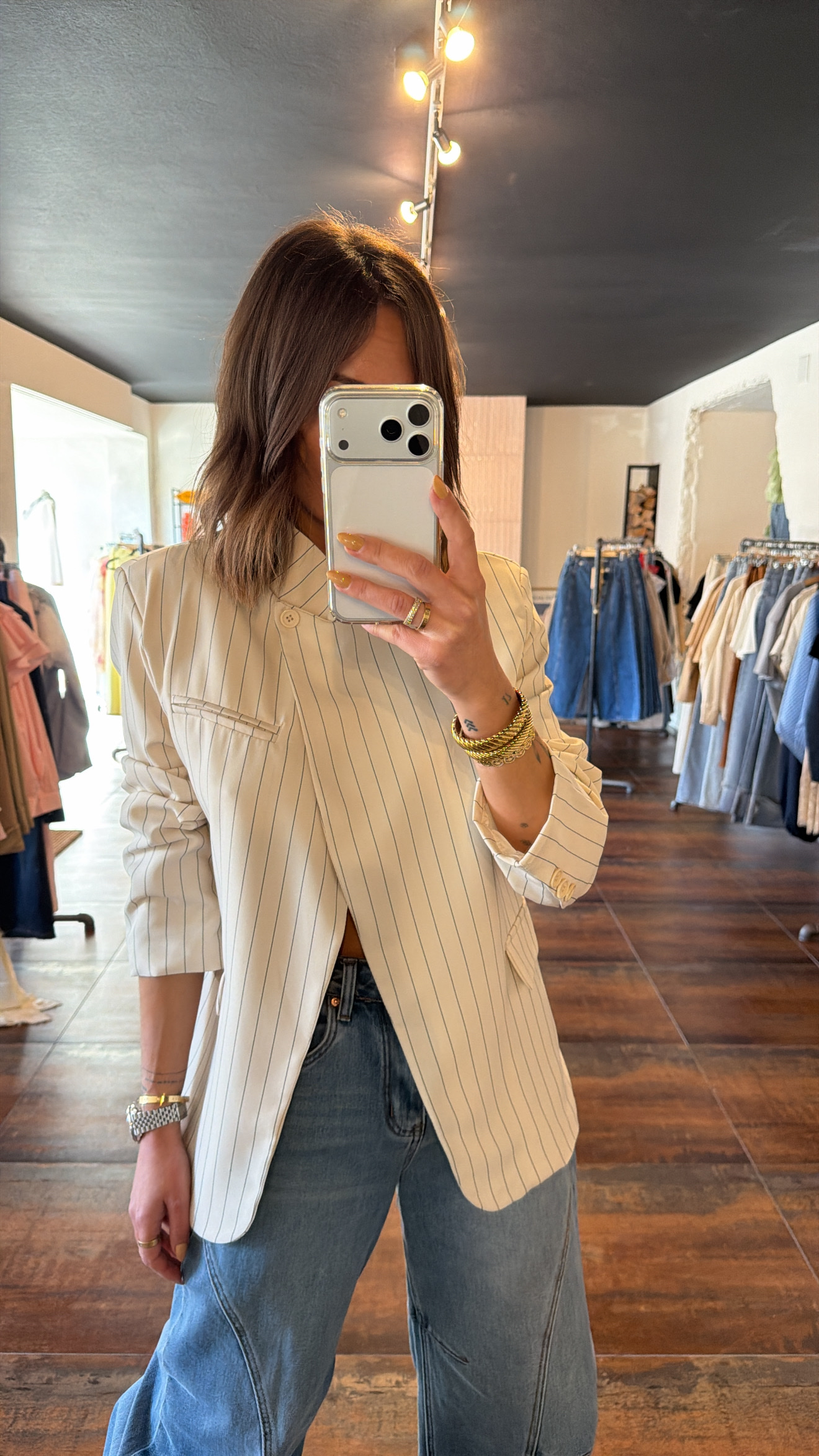 Blazer viral asymétrique – écru ligné