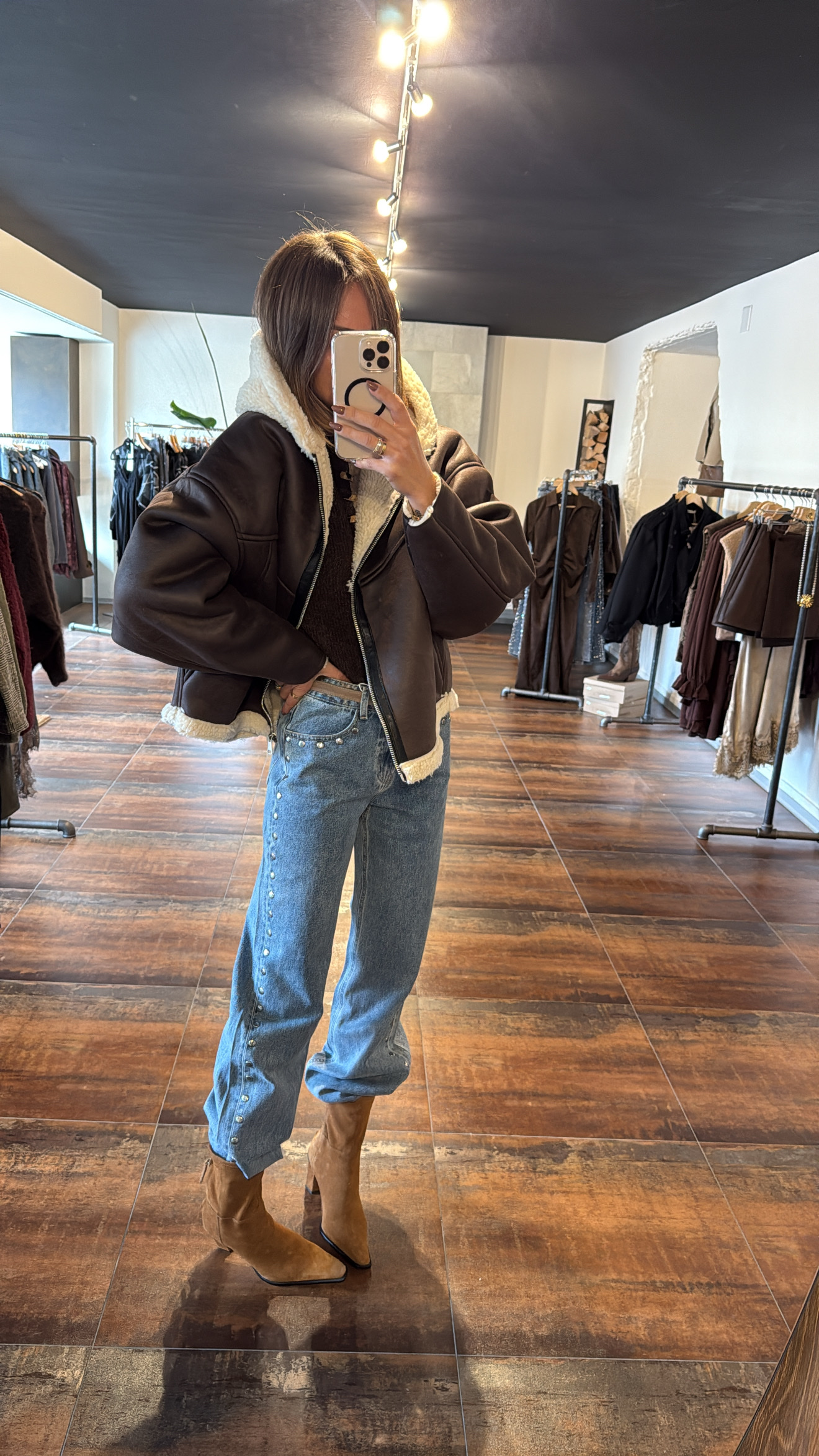 Blouson aviateur marron avec capuche moumoute – Pépite exclusive caro-line