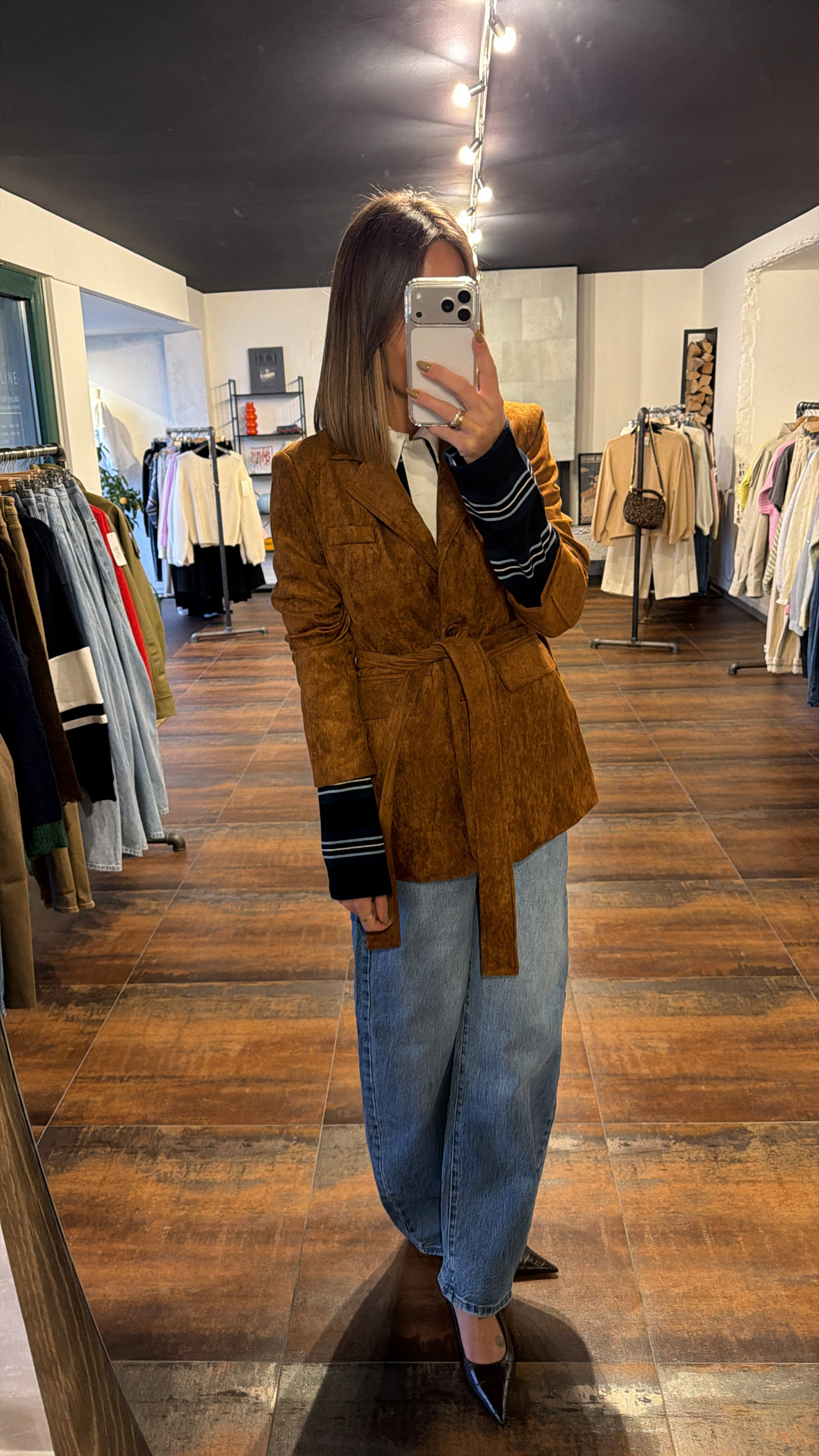 Blazer en suédine avec ceinture amovible.