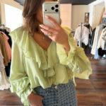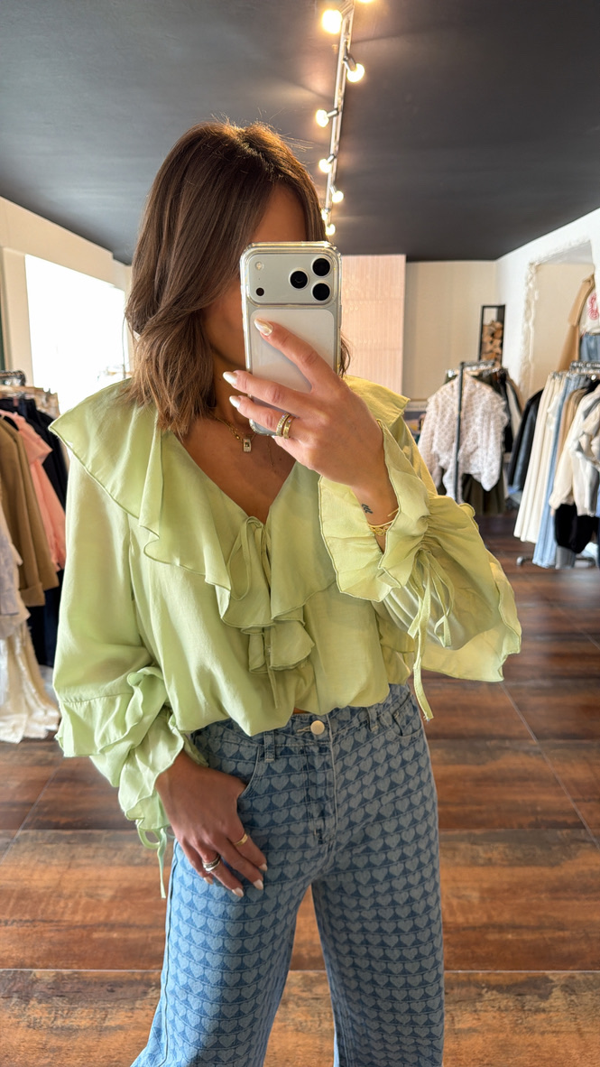 Blouse à volants cropped – matcha