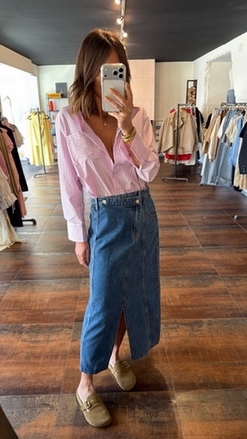 Chemise large broderie sur la poche