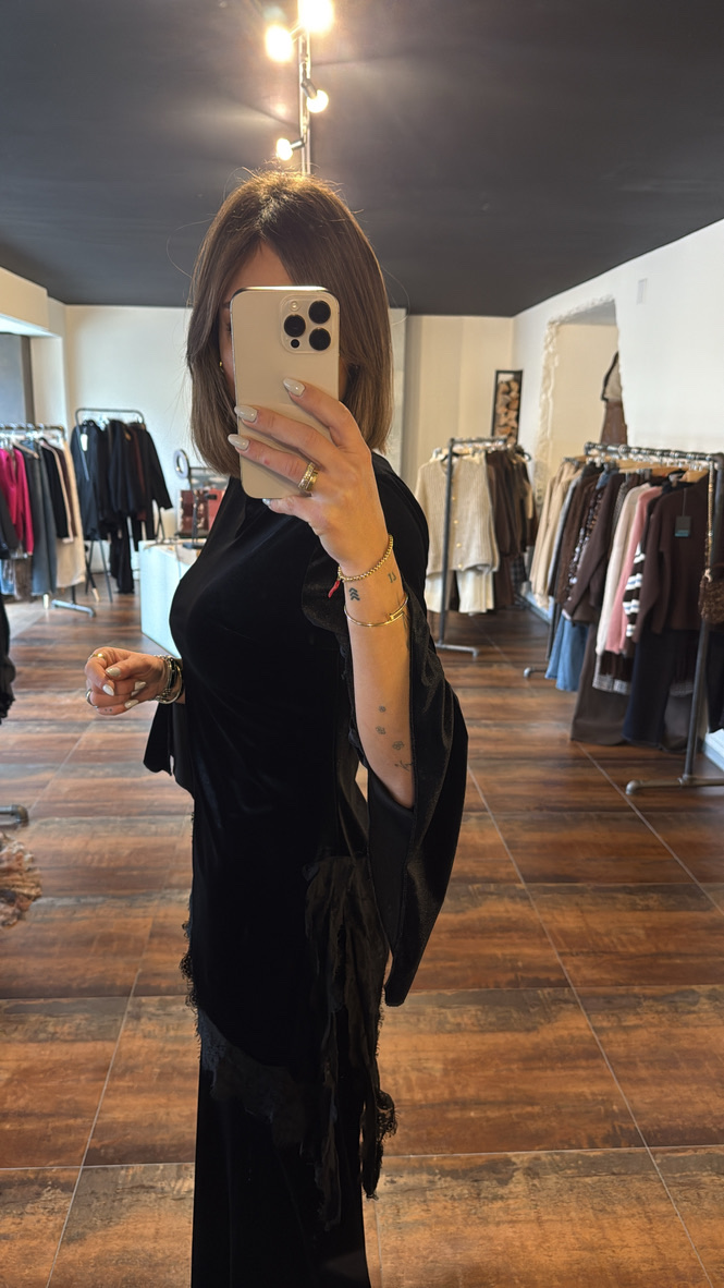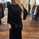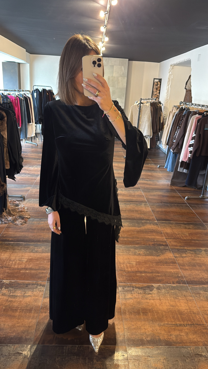 Haut velours asymétrique avec dentelle – noir