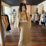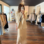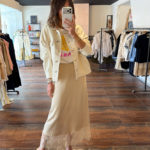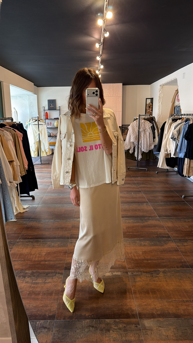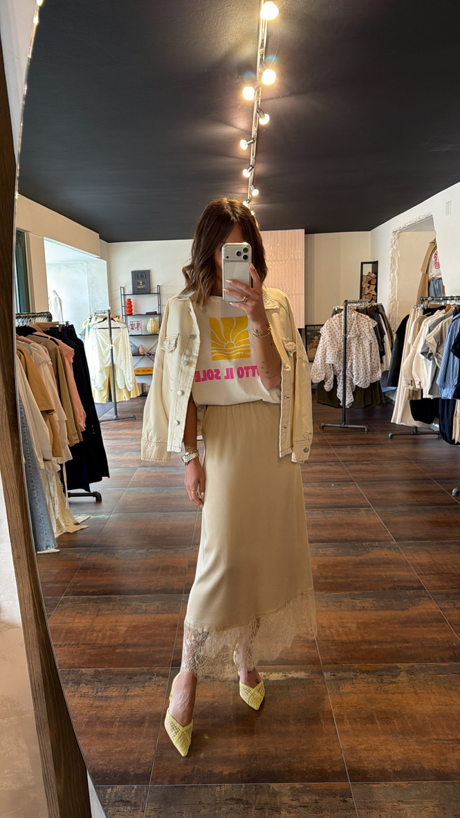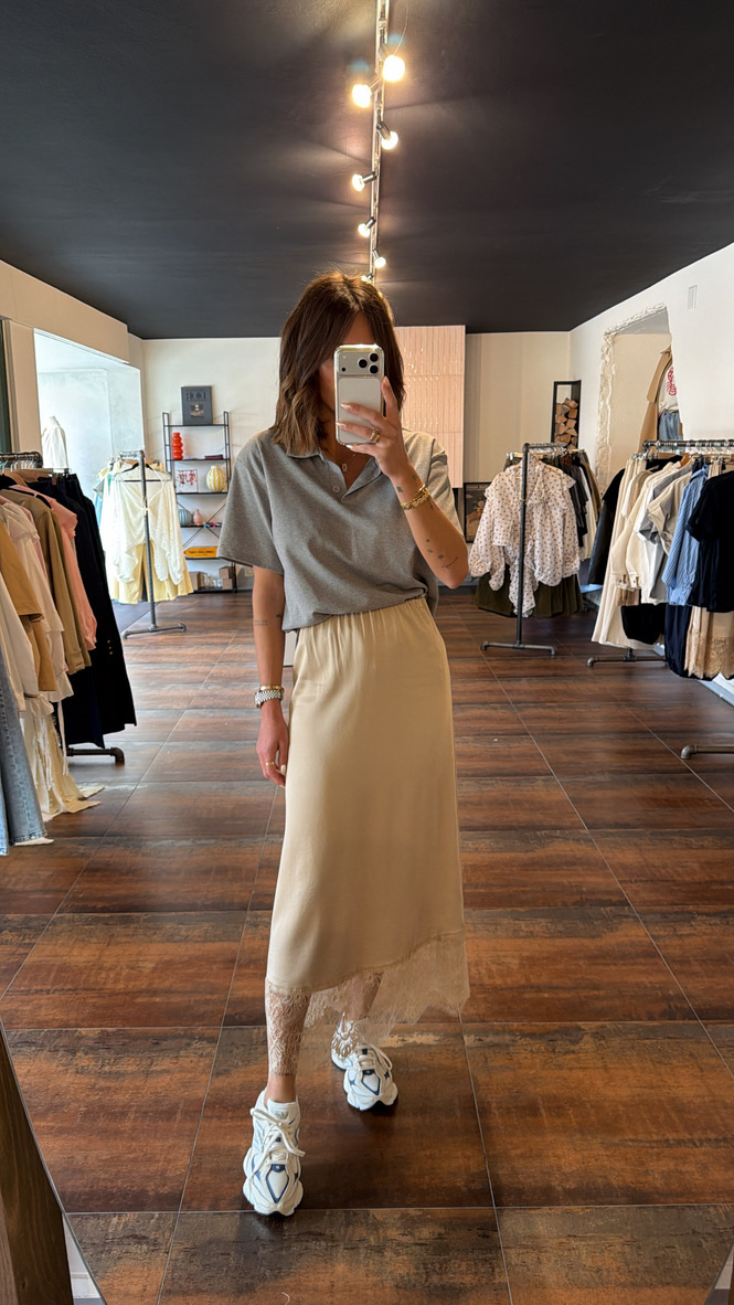 Jupe satinée bas dentelle – beige