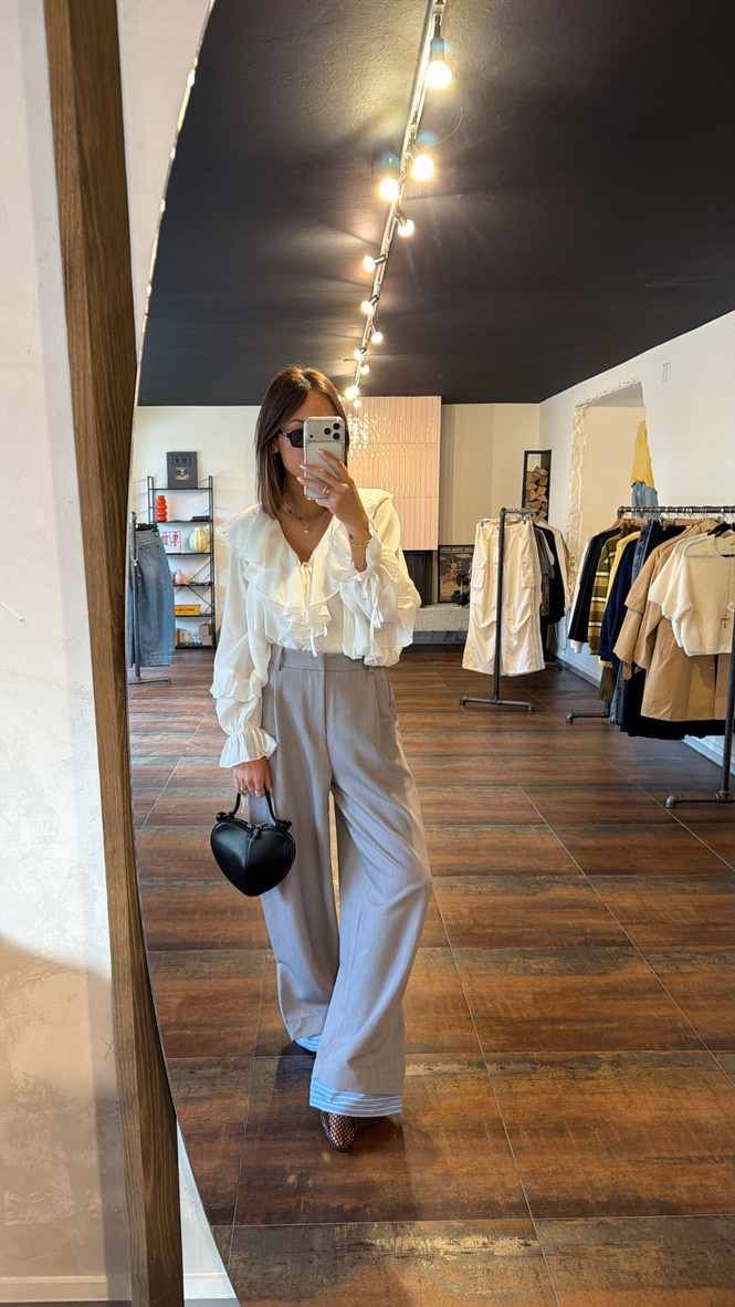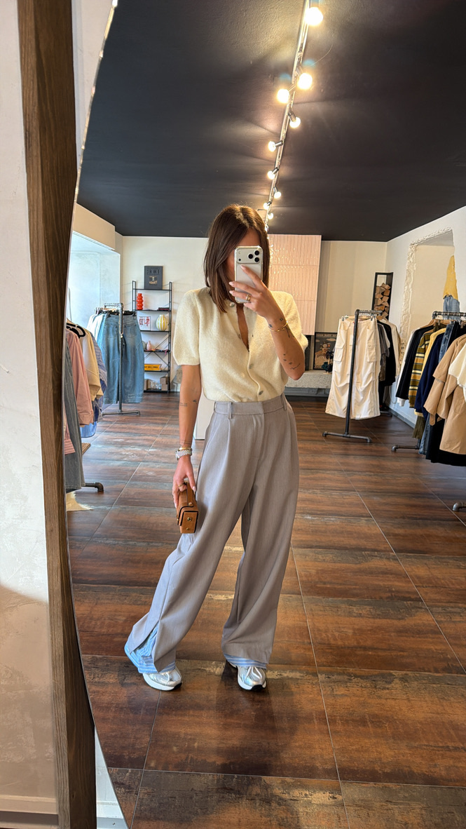 Pantalon Gris bas détail popeline – coup de coeur Caro