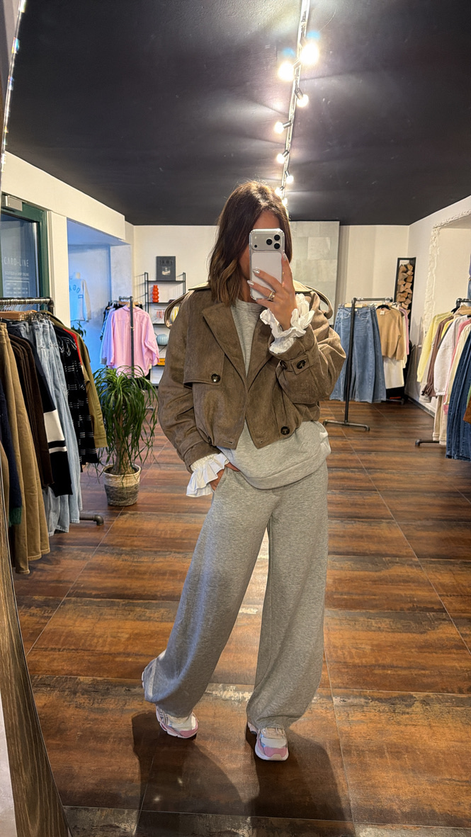 Sweat loose Carole manche chemise – Grey